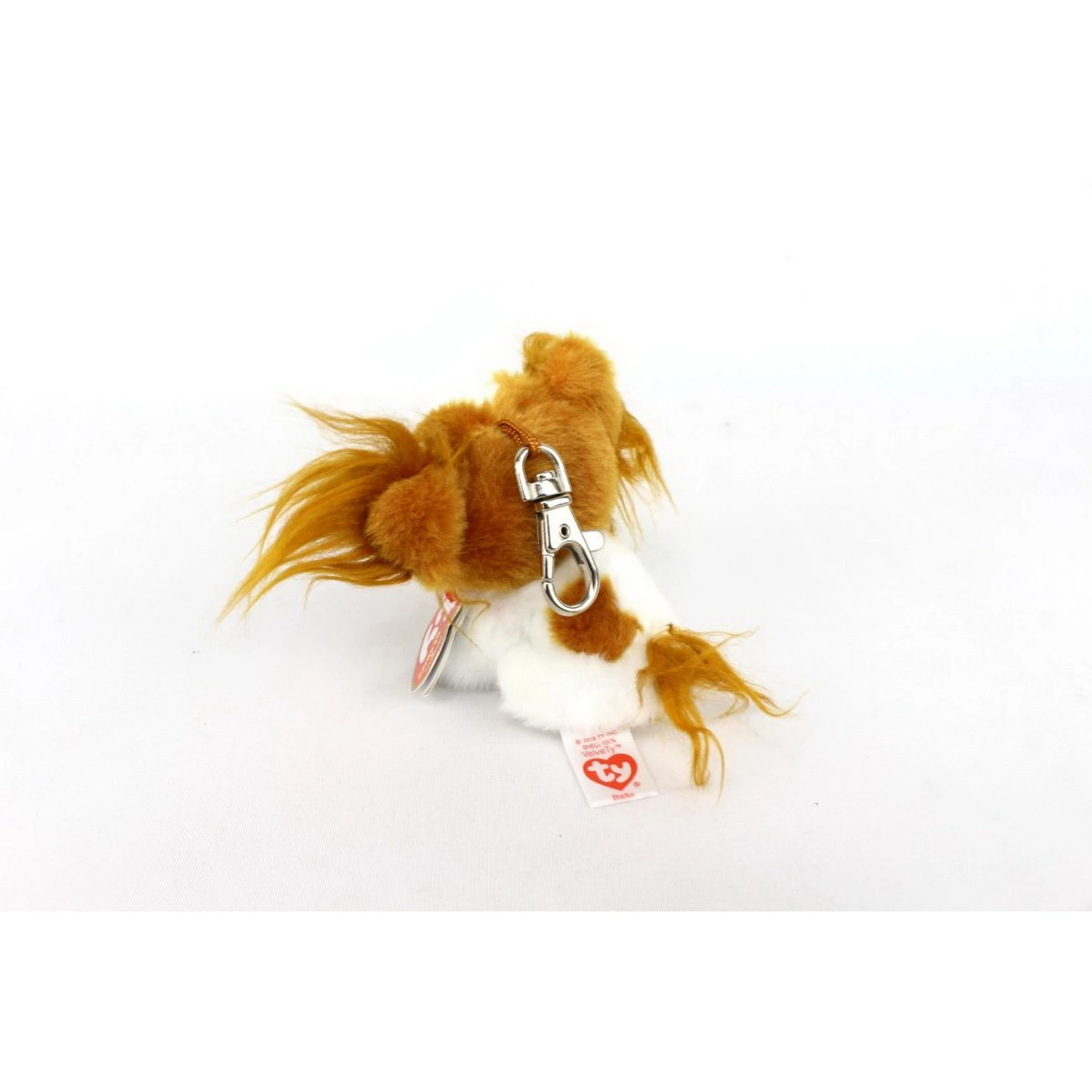 Hündchen Barks – vielleicht ein Chihuahua – ist ein niedlicher kleiner bunter Plüsch Anhänger mit Clip.
